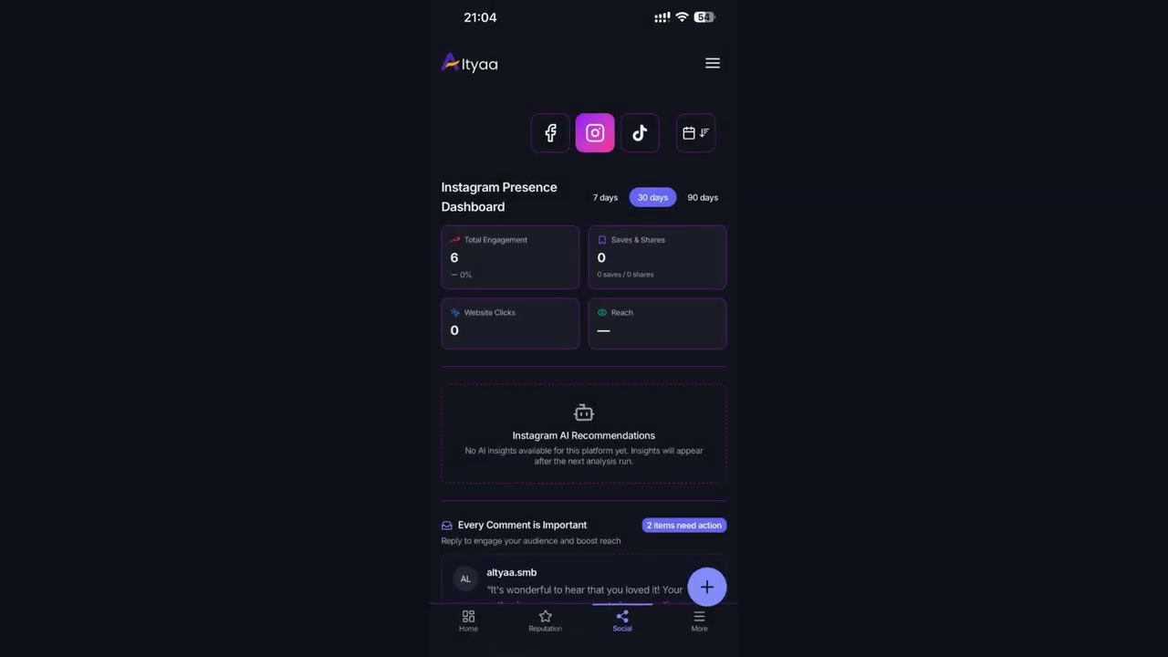 ALTYAA puts cutting-edge AI to work for you—creating content, responding to reviews, scheduling posts, and analyzing sentiment across every platform.